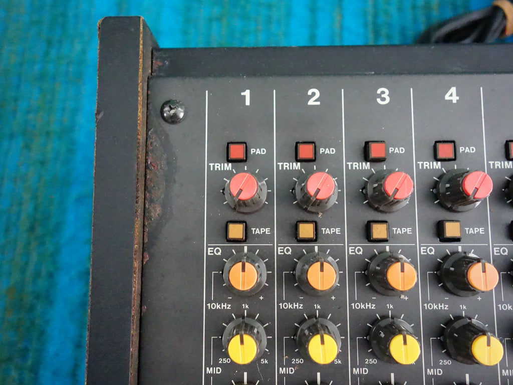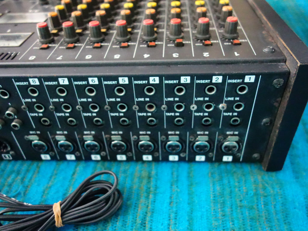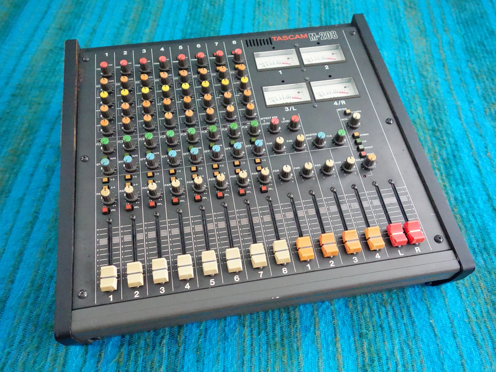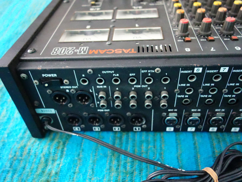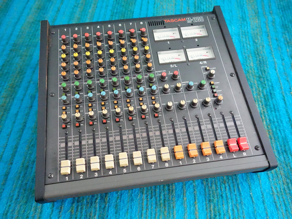 This vintage Tascam M-208 mixer is fully functional and in pretty good working condition, despite some cosmetic wear such as scratches and rust marks on the top / side panel.